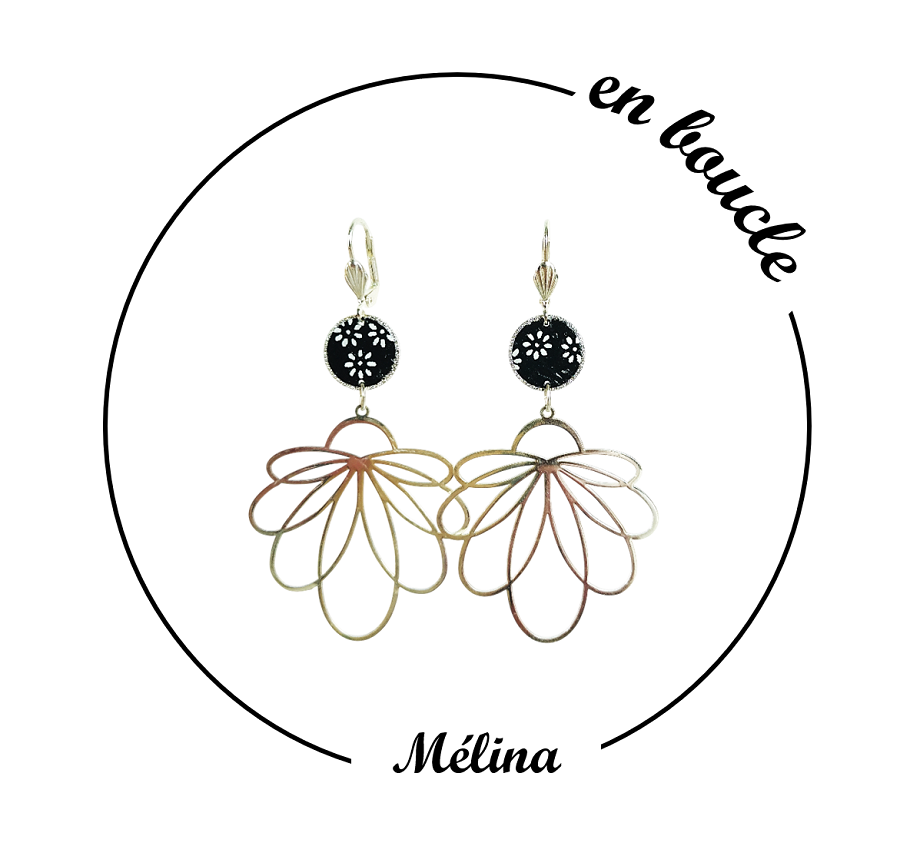 Voici une paire de boucles d’oreille qui sait mélanger le chic et le whaou !! On adore son énoooorme pampille fleurie super légère et son motif black n white trop trop mims ! Un accessoire parfait hiver comme été.